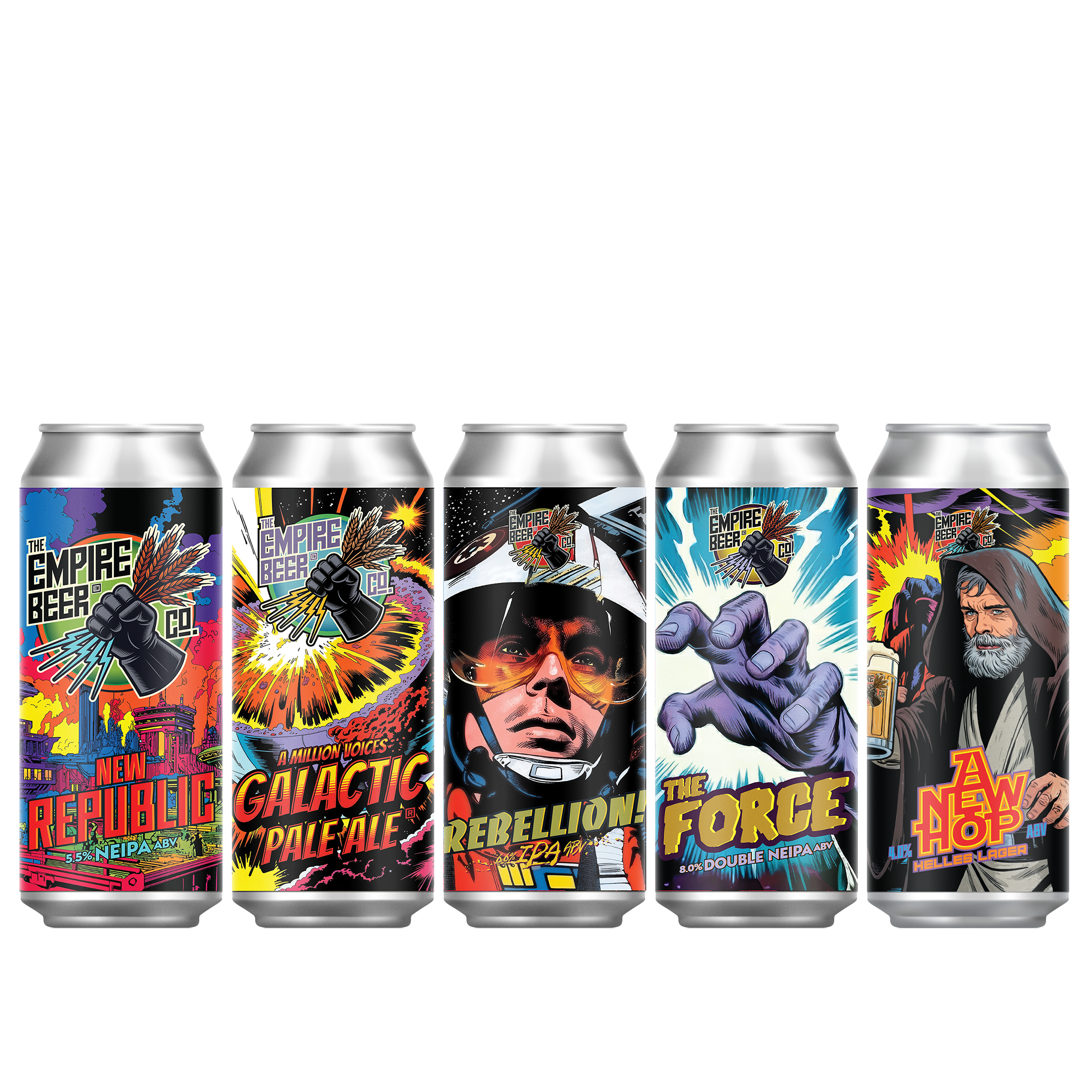 Each stunning 440ml beer is bursting with bold character, cosmic hops, and a nod to the galaxy far, far away.