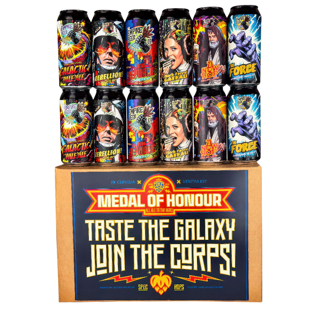 When you have absolutely, positively got to hydrate every 'Trooper in the room. 12 rounds of high quality, small batch, general-purpose craft ordnance (2 each of Black Forest Gateau, The Force, New Republic, Rebellion, Million Voices, A New Hop) in a single thirst-quenching supply drop.